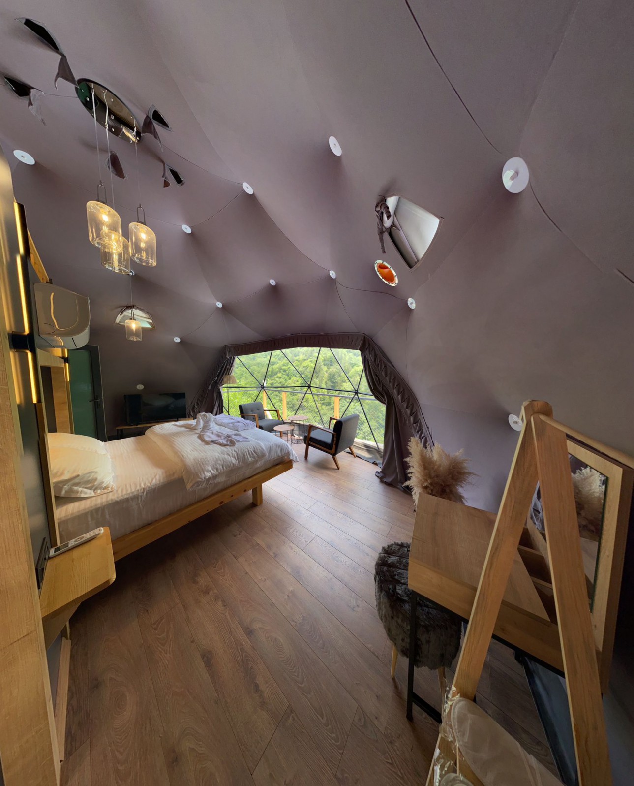 30 m2 genişliğinde olan standart kubbemiz dere ve vadi manzarasına sahiptir.Doğa ile uyumlu,modern bir tarzda dizayn edilmiştir.Oda içerisinde bir adet çift kişilik yatak mevcuttur.İstenilmesi durumunda extra 3. kişi için ek yatak konulabilinir. Panoramik pencere önünde ise keyifli sohbetler gerçekleştirebileceğiniz bir oturma alanımız vardır.Kubbemiz unutulmaz bir doğa deneyimi için geniş bir teras alanına sahiptir.Bu alanlarda çay ve kahvenizi hazırlayıp yudumlayabilmek için özel olarak tasarlanmış mini bir mutfağımız bulunmaktadır.Kubbemizde klima mevcuttur.Fiyatlarımıza kahvaltı dahildir,serpme kahvaltı şeklinde restaurant bölümümüzde servis edilmektedir.Kahvaltımıza yöresel ürünlerle hazırlanmış muhlama ve diğer sıcak ikramlarımız dahildir.Oda içerisinde içeceklerimiz ücretsizdir.