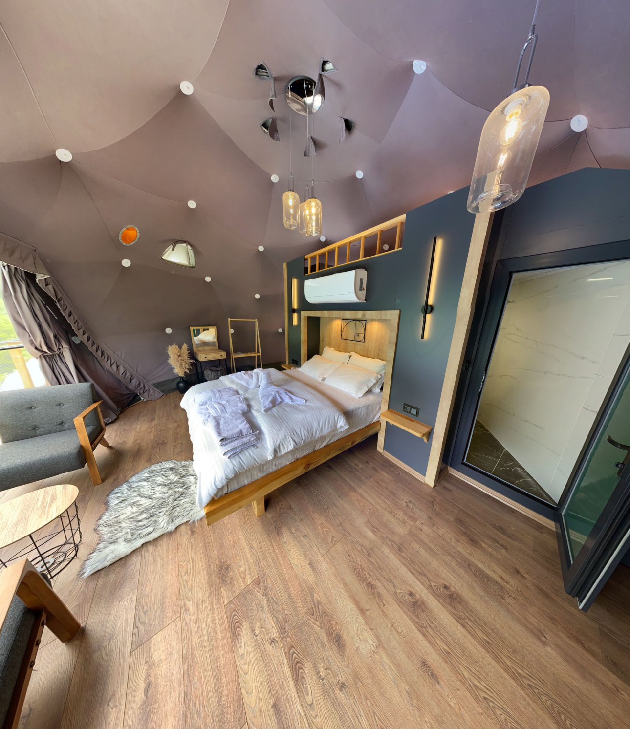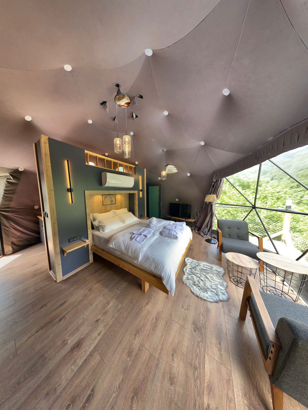30 m2 genişliğinde olan standart kubbemiz dere ve vadi manzarasına sahiptir.Doğa ile uyumlu,modern bir tarzda dizayn edilmiştir.Oda içerisinde bir adet çift kişilik yatak mevcuttur.İstenilmesi durumunda extra 3. kişi için ek yatak konulabilinir. Panoramik pencere önünde ise keyifli sohbetler gerçekleştirebileceğiniz bir oturma alanımız vardır.Kubbemiz unutulmaz bir doğa deneyimi için geniş bir teras alanına sahiptir.Bu alanlarda çay ve kahvenizi hazırlayıp yudumlayabilmek için özel olarak tasarlanmış mini bir mutfağımız bulunmaktadır.Kubbemizde klima mevcuttur.Fiyatlarımıza kahvaltı dahildir,serpme kahvaltı şeklinde restaurant bölümümüzde servis edilmektedir.Kahvaltımıza yöresel ürünlerle hazırlanmış muhlama ve diğer sıcak ikramlarımız dahildir.Oda içerisinde içeceklerimiz ücretsizdir.