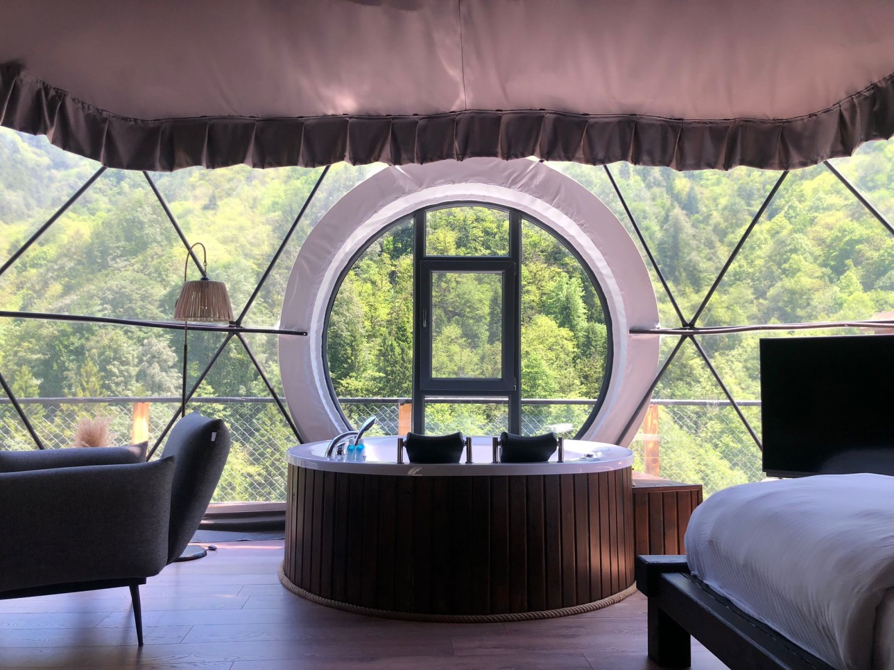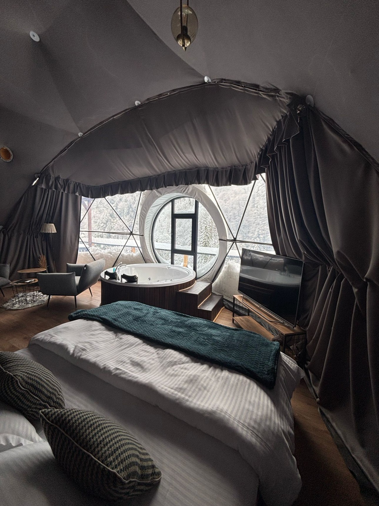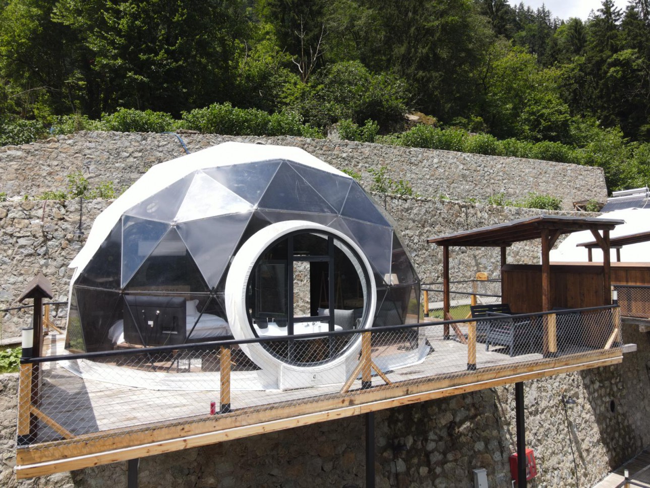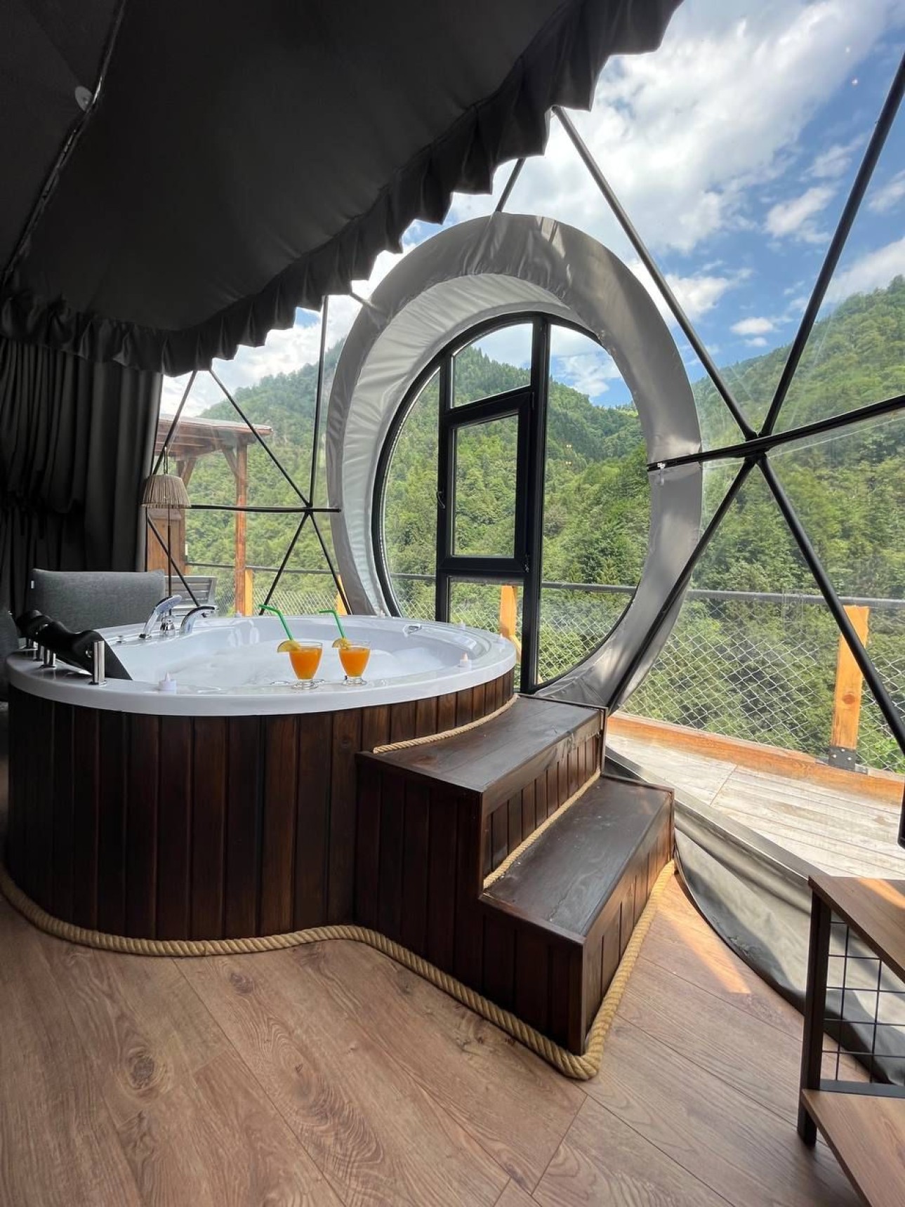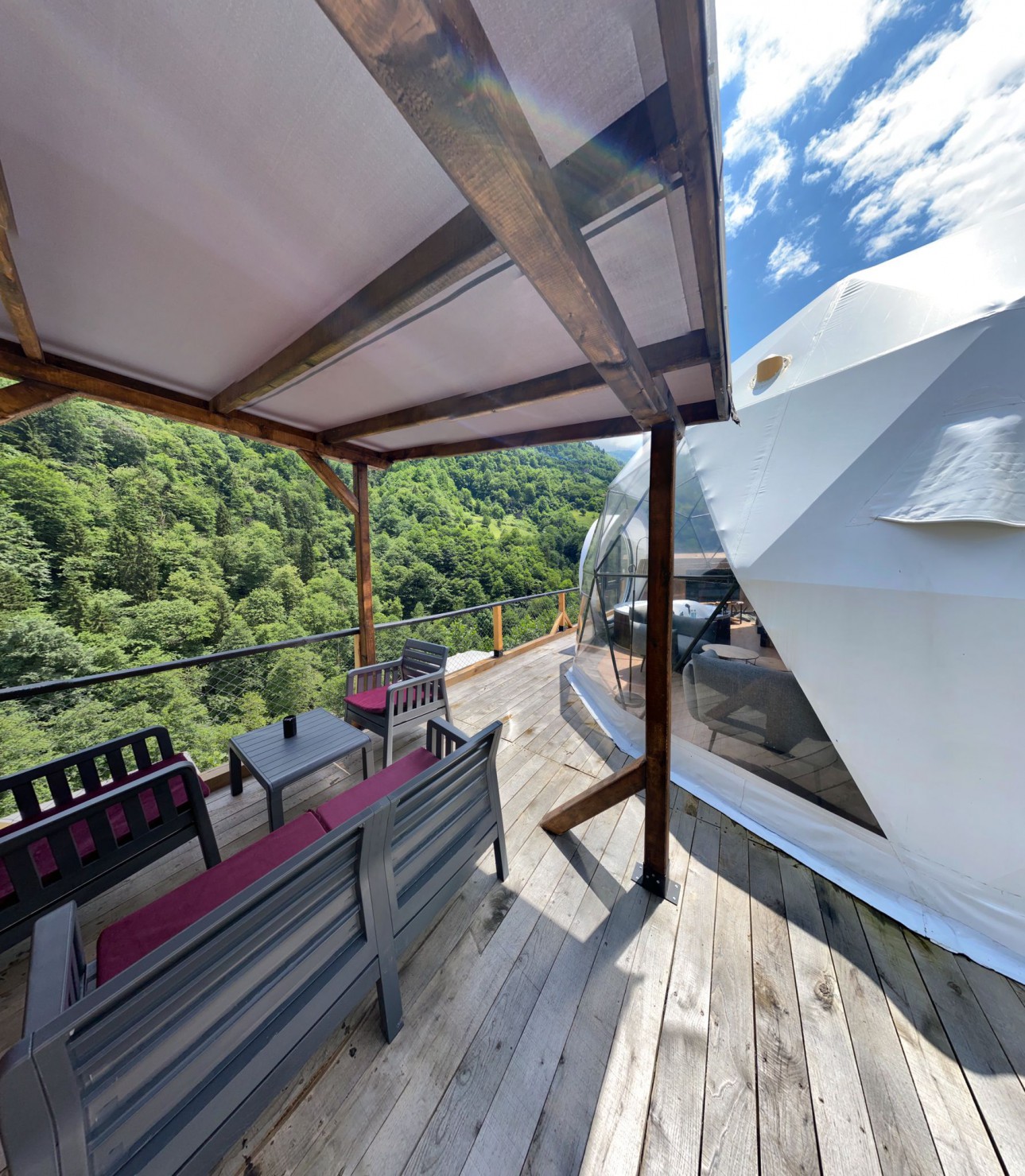 50 m2 genişliğinde olan Suit kubbemiz dere ve vadi manzarasına sahiptir.Bir adet çift kişilik King yatak bulunmaktadır.İç dizaynı çiftlerimiz için özel olarak tasarlanmıştır.Geniş banyo bölümünde bir adet oda içine bakan pencere mevcuttur.Oda içerisindeki jakuzimiz panoramik pencere önünde yer almaktadır.Yatak başlığımız özel kütüklerden hazırlanmıştır.Kubbemiz unutulmaz bir doğa deneyimi için geniş bir teras alanına sahiptir.Bu alanda çay ve kahvenizi hazırlayıp yudumlayabilmek için özel olarak tasarlanmış mini bir mutfağımız bulunmaktadır.Kubbemizde klima mecuttur.Fiyatlarımıza kahaltı dahildir.Serpme kahvaltı şeklinde restaurant bölümümüzde servis edilmektedir.Kahvaltımıza yöresel ürünlerle hazırlanmış muhlama ve diğer sıcak ikramlarımız dahildir.Oda içerisindeki içeceklerimiz üretsizdir.